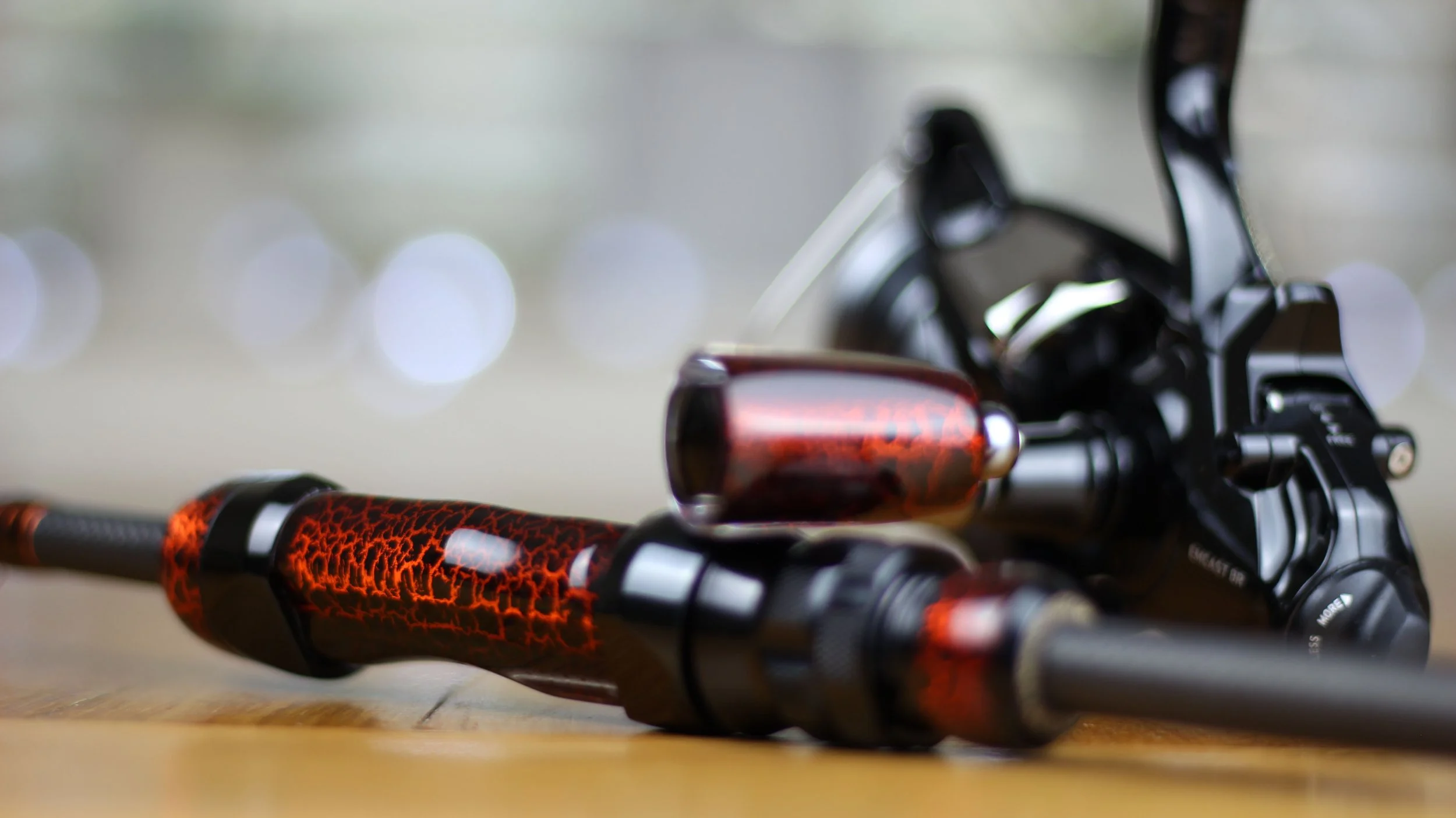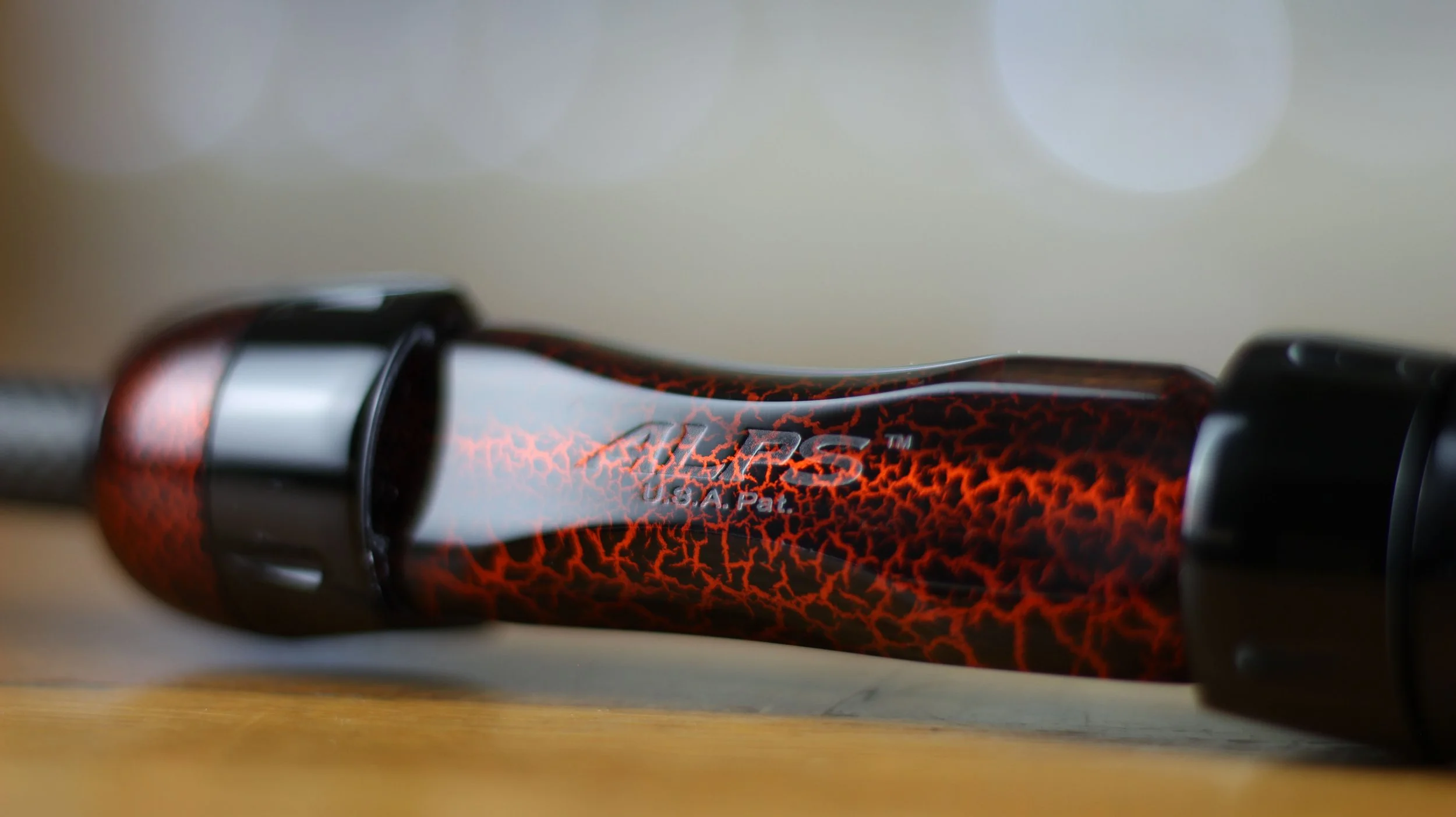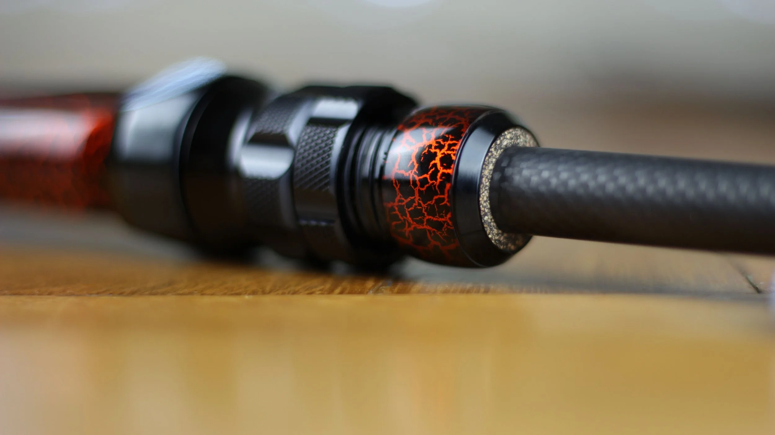 REEL SEAT - Fully modified ALPS ARD wave form reel seat ( unique to resilure , its 15% lighter and semi-flexible compared to all metal version), custom 2 tone amboyna burl wood reel seat insert with 3d metal carp. Matching butt , foregrip and rear grip all completely sealed and waterproof . Carp eye butt cap . Black Sea guide guides with decorative thread spiral wrap .